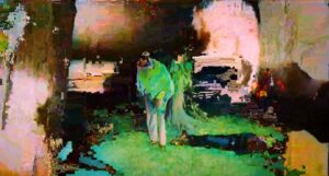 Félix Vallotton, Verdun. Tableau de guerre interprété, projections colorées noires, bleues et rouges, terrains dévastés, nuées de gaz, 1917, Paris, Musée de l’Armée